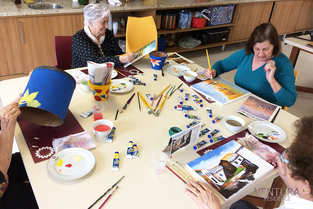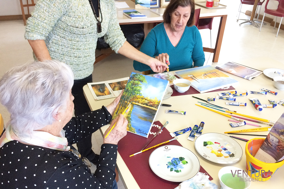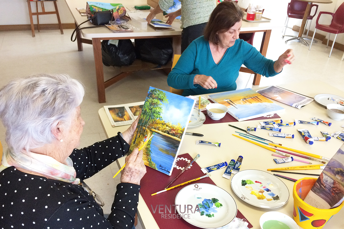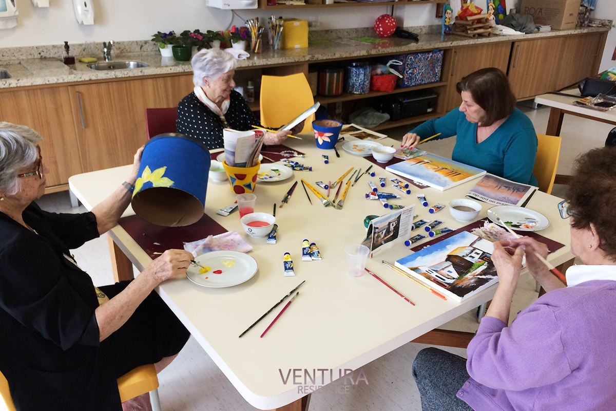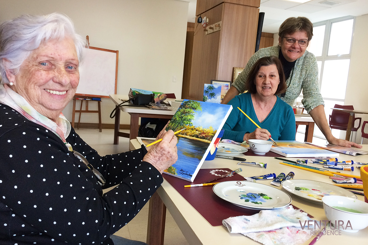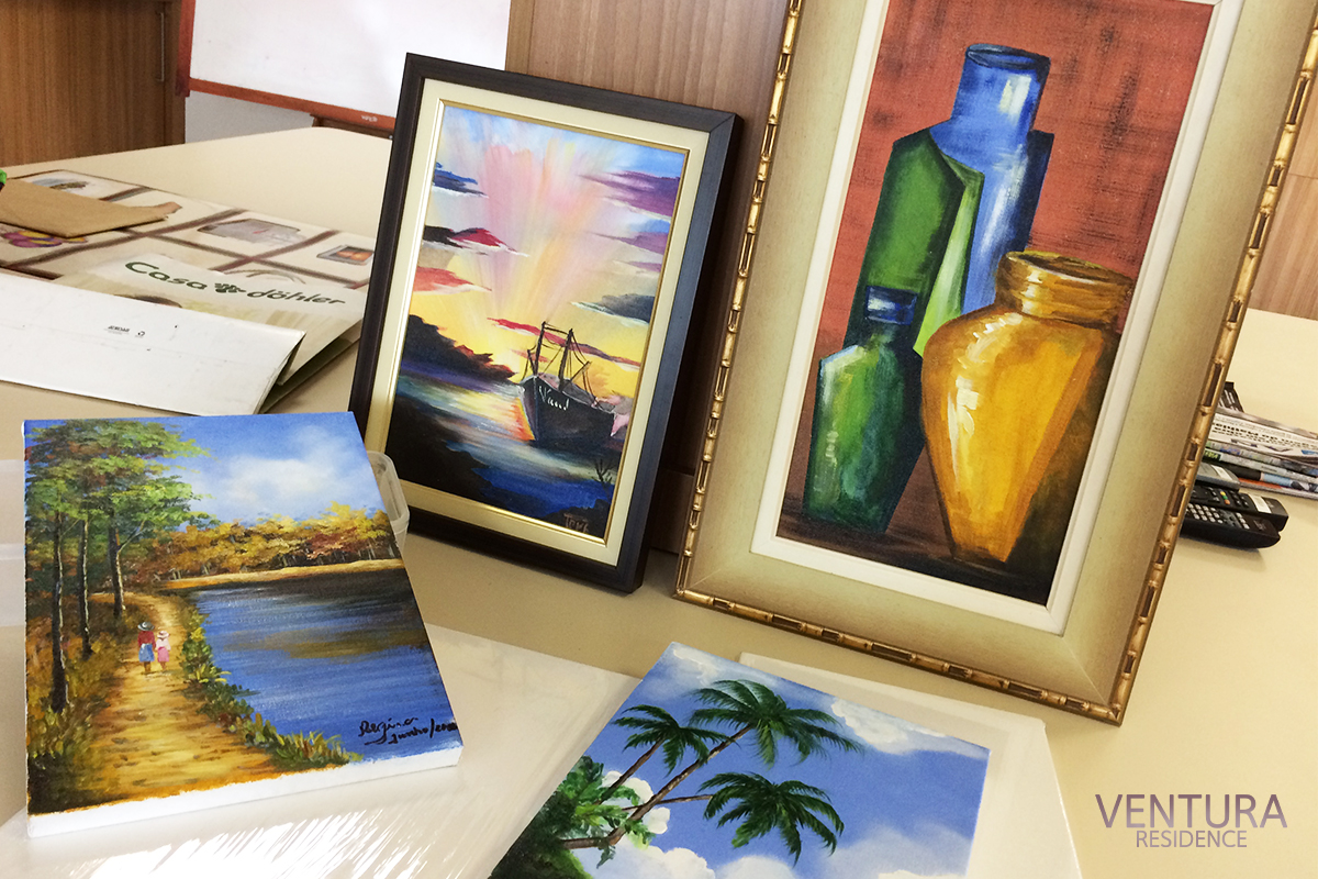 Sempre atenciosos e criativos aos detalhes, nossos idosos adoram aprender e aprimorar suas habilidades com o pincel. Com o auxílio da artista Marli, nosso ateliê fica uma chuva de cores, os resultados são impressionantes, consequentemente, expostos por todo o prédio!